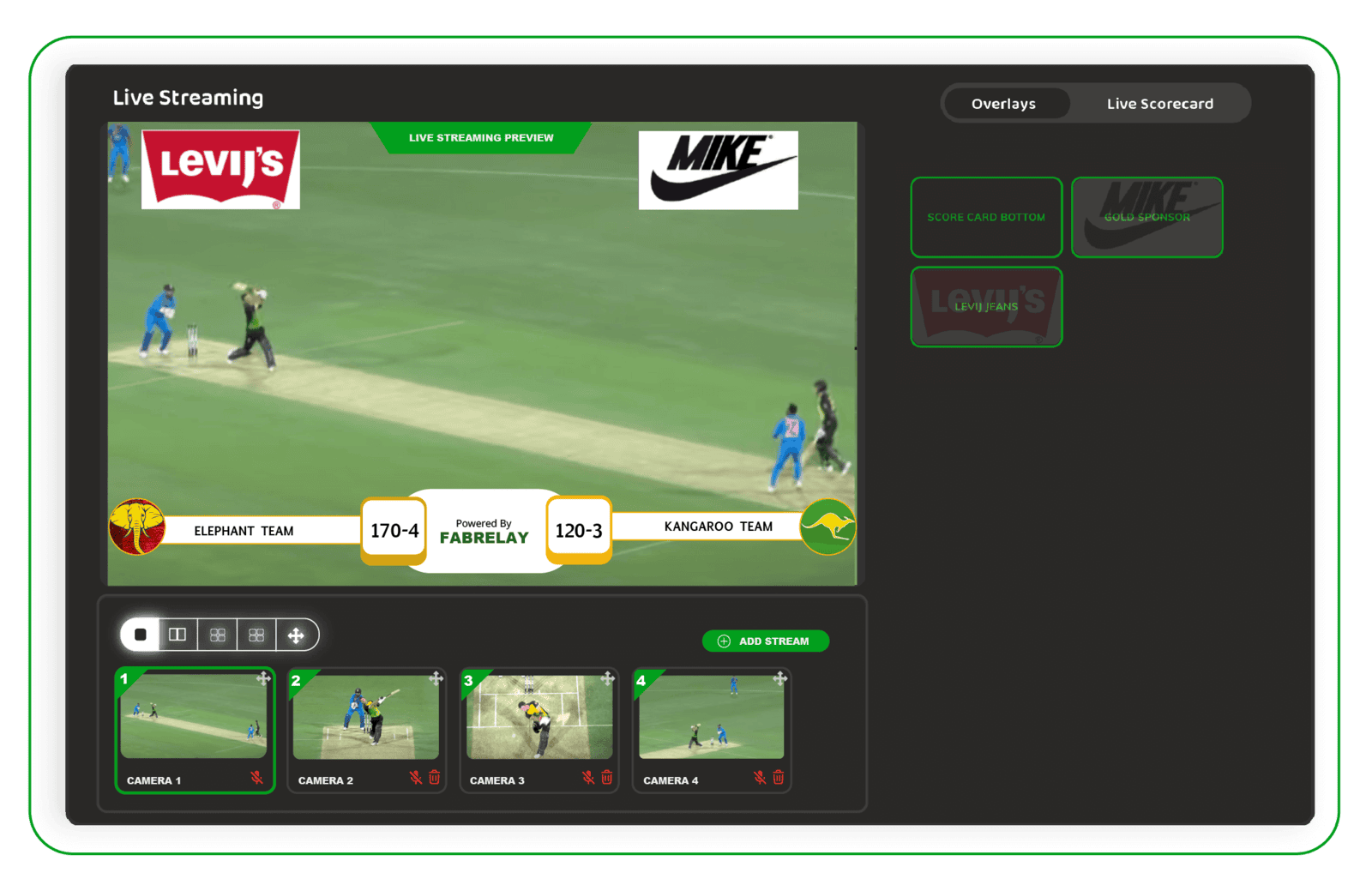 Enjoy features like multi-streaming, stunning layouts, live overlays, and real-time scoring. Manage your stream and access analytics effortlessly.